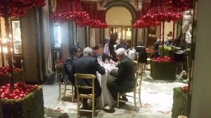 Omaggio all’arte nella sua sfera squisitamente economica, una splendida serata allieta selezionati ospiti invitati da Deutsche Bank al blasonato Four Seasons fiorentino. Già adorno di scenografici addobbi natalizi, il vanitoso Bacco michelangiolesco scruta compiaciuto gli invitati, attentissimi nell’ascoltare esperti oratori. In quanto tale, l’opera d’arte trova naturale protezione in fascia finanziaria, che ne cura aspetti disciplinati da leggi garanti del suo valore storico, artistico, economico. Insomma, luminari eruditi svelano quanta normativa supporti le creazioni legate al genio umano. Fortemente appoggiata da Alberto Tronconi, responsabile Private, Wealth & Commercial Clients by Deutsche Bank, l’iniziativa fa breccia nei partecipanti, comunque consapevoli del sicuro successo: Tronconi si dedica con ponderata professionalità alla clientela privata in fascia alta! Dirigenti, liberi professionisti, imprenditori rappresentano, per l’alto funzionario, figli da guidare e consigliare nella sfera business, offrendo loro servizi decisamente personalizzati. La serata trova proseguo nel raffinato convivio, trionfo onirico di eleganza tra velluti, arredi antichi, cristalli, argenti, raffinate pietanze estasianti vista e palato. Merci beaucoup monsieur Tronconi! A pochi passi, Relais S. Croce pavoneggia nelle sua magica bellezza settecentesca, tra ambienti affrescati e sontuosi arredi coniuganti antiquariato, gusto, design contemporaneo, il cui apice risiede nella Sala della Musica, trionfo in stucchi barocchi dalla squisita bellezza classica, camino in marmo, soffitto a volta. Camere e suite, poi, sono un incanto. Qui regna sovrano lusso, confort, design, arte, storia, racchiusi nello scenografico palazzo patrizio ospitante il ristorante Guelfi e Ghibellini, già infervorato per fine anno. E si, cuochi provetti hanno in mente selezionate portate spazianti dai fagioli cannellini e faraona al millefoglie di pasta verde ai crostacei con gambero croccante, dal branzino con pistacchi brontesi, vellutata di patate violette, pomodorini confit alla fogliata di mascarpone, zucchero filato, crema al ribes nero. Il dopo cena trova piacevole proseguo nella danza, oculata idea per smaltire calorie incalzanti ed aspettare l’anno nuovo in allegria. Dulcis in fundo, Golden Tower Hotel & Spa ospita Christmas Party by Federalberghi Firenze, elegante serata augurale, ma anche occasione per esternare voglia di miglioramento nel sistema accoglienza e rischio overbookink, chiaro messaggio alle istituzioni nel voler marciare insieme. Il Presidente, Francesco Bechi, dona agli ospiti squisiti panettoni realizzati per Fondazione Tommasino Bacciotti, estasiati dall’ottimo dinner realizzato in albergo. E si, Golden Tower & Spa ha fascino innato, fatto di ambienti intimi, accoglienti, eleganti avvolti nella storia turrita della principesca famiglia Strozzi. Camere, suite, rilassante Golden Beauty & Spa attraggono clienti esigenti, deliziati presso il Golden Restaurant da genuine golosità, augusto ambiente dalle volte affrescate.