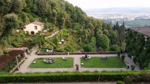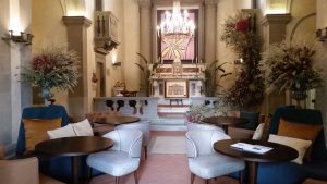 Monumentale nella elaborata composizione architettonica, Villa S. Michele ha nomea di essere altezzosa. Come darle torto, alla sua artistica progettazione ha collaborato anche Michelangelo! Abbellita da timpano triangolare e ingentilita da finestroni, archi, delicato fregio, la maestosa facciata troneggia tra un verde addomesticato a mo’ di paradiso terrestre, perché ciò si presenterà ai vostri occhi. La manica lunga dell’antico monastero si sviluppa lungo un declivio collinare, reso scenografico dal loggiato quattrocentesco con vista sulla piana sottostante. Gli interni trasudano storia secolare, già, percepita nella magnifica chiesa sconsacrata con tanto di altare marmoreo, trasformata in luxury hall del patinato albergo. Colonne, capitelli, chiostri, camini toscani arricchiscono una location esclusiva arredata con mobilio miscelante design contemporaneo ed antiquariato. Collocato nell’ex refettorio, il sacro affresco de L’Ultima Cena domina su tutto, lasciando basiti quanti ne contemplano la bellezza prima di recarsi nel celebre giardino terrazzato. Meraviglia umana, il garden fiesolano è incastonato tra boscaglia mediterranea, distribuito su vari livelli abbelliti da aiuole e siepi squadrate, spesso, ingentilite da variopinti fiori stagionali, la cui parte bassa evoca un rinascimentale giardino all’italiana. Su, l’invitante piscina tinge d’azzurro un grande prato all’inglese ed il delizioso roof garden si erge a posticino romantico dove consumare lauti assaggi della rinomata cucina Belmond Villa S. Michele. Rimanendo in tema enogastronomico, piatti e vini elaborati trovano supporto nel patinato ristorante La Loggia, che tra Millefoglie di verdure biologiche, fonduta di pomodoro fiorentino e fili di porro fritti, Raviolo di pasta fresca farcito con ribollita alla toscana e gratinato con lardo di Colonnata, Filetti di rombo chiodato con carciofi novelli in crosta di patate viola al rosmarino ed altre prelibatezze, supportate da ottimi vini, allieta gole esigenti. Pernottare in Hotel è, poi, una goduria: Suite curate trovano alloggio nella prestigiosa struttura conventuale, mentre le camere sono sistemate nelle alzate dei famosi giardini, talmente mimetizzate tra rigogliosi rampicanti da diventarne parte integrante, rendendo questi ambienti un oasi verde a cinque stelle. A proposito, ricordate che Villa S. Michele apre in estate le porte anche ai fans autoctoni coi leggendari happy hours e cocktail serali tematici, diventati oramai emblema di glamour, eleganza, raffinatezza culinaria.