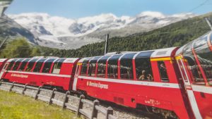 Coira / Landquart / Davos / St. Moritz – Valposchiavo – Tirano, entusiasmante traversata alpina a bordo dell’arcinoto Bernina Express tra vedute mozzafiato in territori variegati per cultura, tradizioni, lingua, non potrebbe essere diversamente dinnanzi spettacoli naturalistici e urbani spazianti dalle esotiche palme in suolo italico agli abbaglianti ghiacciai in quota. Un paesaggio montano rispettabilissimo collega l’Albula col Bernina lungo un percorso spettacolare ricco di ben 55 gallerie, 196 viadotti e irti declivi con pendenze superanti il 70 per mille! A 2253m si trova il rifugio Bernina, la cui vista strabilia difronte al candore eterno di questi monti, fruibile grazie alle moderne carrozze panoramiche del nostro treno. Qualora vogliate festeggiare una ricorrenza, ottimo regalo è senz’altro il pacchetto sorpresa “Viva”, servito dal personale presente sul treno, goduria di prodotti enogastronomici grigionesi di alta qualità, servito nell’assoluto rispetto delle norme anti-covid.