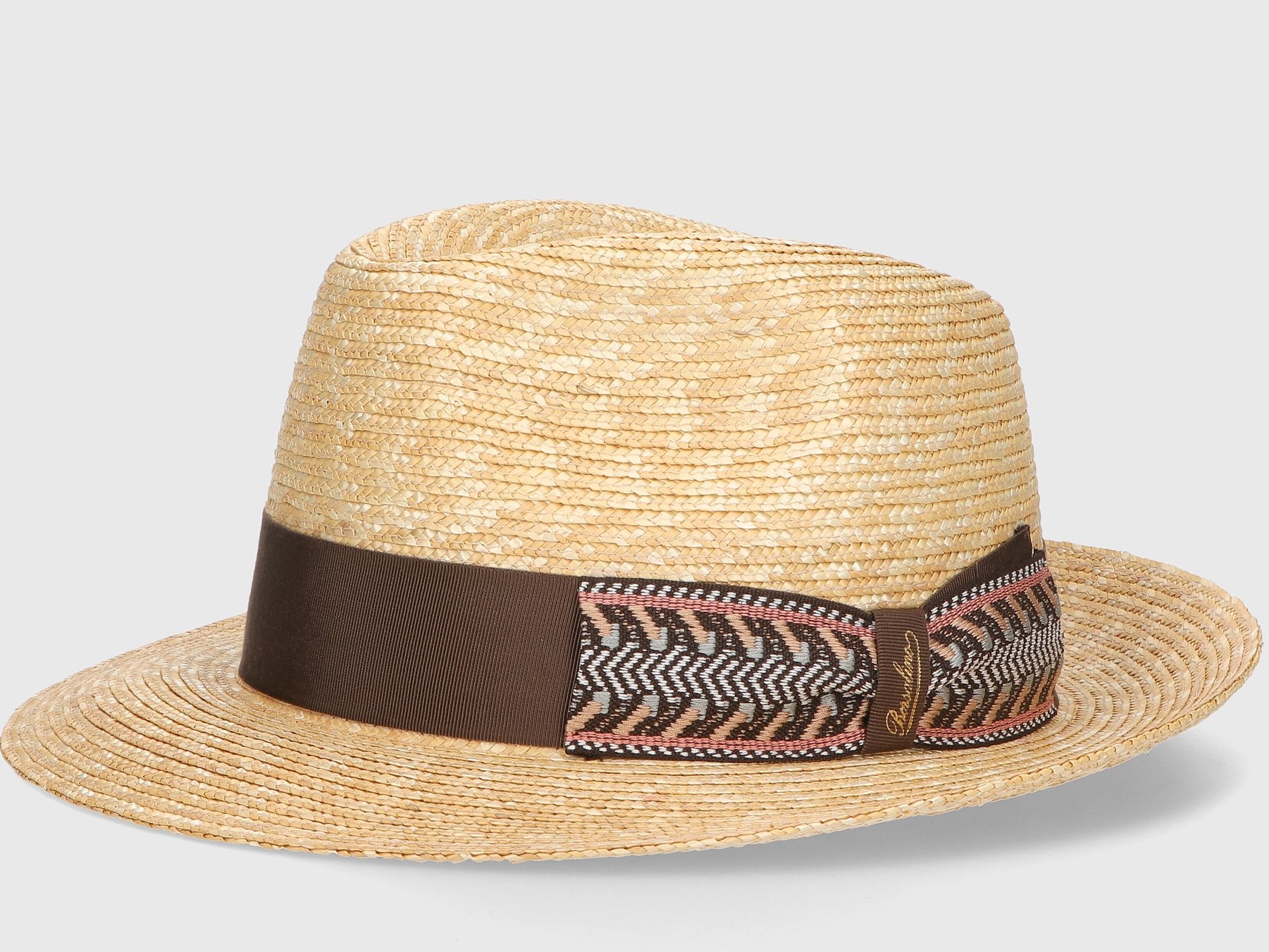 Fuori Fortezza, Borsalino medita sulla natura attraverso acqua e aria quali elementi primordiali tanto cari agli Impressionisti. Pensati per un domani sincretico, cappelli, berretti, accessori S/S 2023 omaggiano ricerca, creatività, lusso, tradizione, così copricapo Arts and Crafts evocano bellezza rurale dai colori intensi alla Monet, come quel Panama Quito in paglia multicolor decisamente bello, ma anche creazioni sfrangiate, nastri chevron, elementi floreali impreziosenti applicazioni, nastri jacquard, ricami. La pelletteria Borsalino? Inno al viaggiare secondo dettami del luxury style, come ben sa quella borsa Demetra in paglia e rifiniture in pregiatissima pelle.