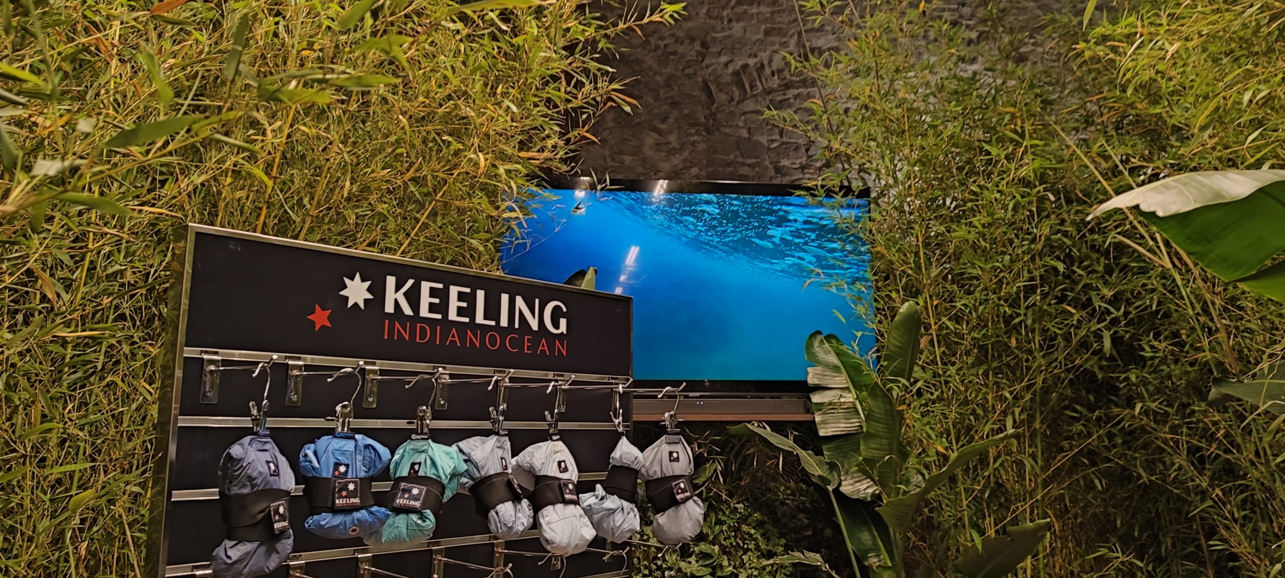 Keeling Indianocean e salvaguardia degli oceani, connubio impregnante collezioni nelle quali fashion, colore, qualità, convivono impregnandosi della tecnologia Clean Color, tintura tessile sostenibile adoperante una soluzione a bassissima percentuale in acqua, beneficiandone quello spettacolare Oceano Indiano dall’azzurro variegato. Le sue cromie sono inesauribili fonti per abbigliamento sportivo, beachwear, costumi da bagno, tutti rigorosamente in materiale riciclato sostenibile colorati attraverso soluzioni penetrante nelle fibre tessile in maniera irregolare. Tale peculiarità rende unico ogni capo dall’aspetto increspato, il cui macchinario adoperato è a utilizzo esclusivo del brand Keeling, comunque aperto per collaborazioni internazionali con altri gruppi della moda.