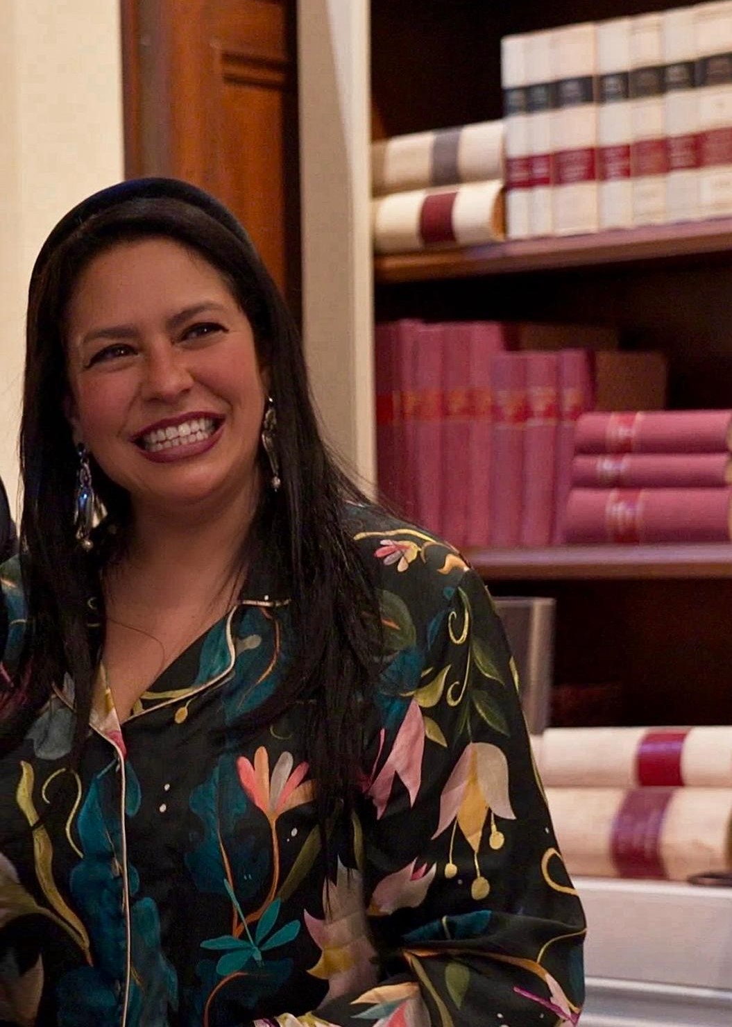 Nella sua Biblioteca aleggia onirica armonia, connubio tra architettura, design contemporaneo, rilevanza artistica, scelta da Bianchi e Nardi 1946 per il raffinato cocktail celebrativo organizzato da Angela Carpio, messicana DOC poliedrica in ambito lavorativo per essere personal shopper, arredatrice, PR e couturier: Sensibile alla bellezza, si innamora di botteghe e laboratori fiorentini, il cui fatto a mano diventa capo personalizzato. Cotanto trasporto passionale assurge la solare Messicana a couturier creativa di eteree fashion collection trasudanti estro, qualità, dovizia in particolari, ricercatezza, tutte rigorosamente artigianali come le materie prime utilizzate, requisiti trovanti apprezzata visibilità nella gran soirée a Palazzo, per la quale Angela ha selezionato brand del saper fare italiano.