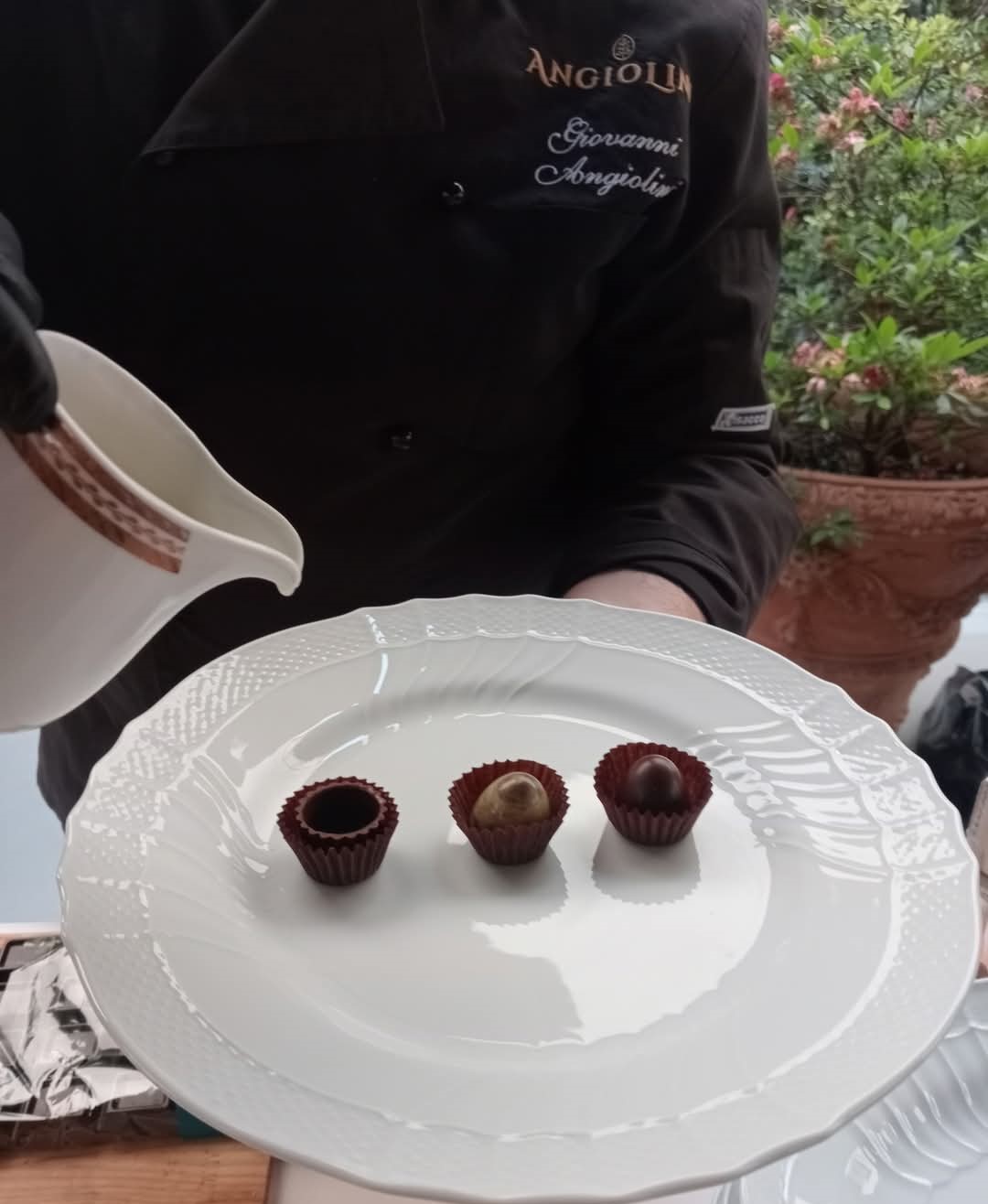 Goduriose chicche noir rammentano Giovanni Angiolini, maestro cioccolatiere la cui raffinata produzione trasuda qualità, ricercatezza, tradizione, impregnanti Tavolette in puro cacao Criollo e Trinitario così aromatici da limitare eccessi in zucchero. Cotanta esclusività irradia Praline dal gusto ricercato e Ensamble, tripudio di ottimo cioccolato avvolgente eccellenze italiche chiamate nocciole delle Langhem trilobate gentili, pistacchi siciliani, mandorle nostrane. Presente per la gran soirée fiorentina, Giovanni ha creato appositamente ricercate chicche estasianti sensi e palato.