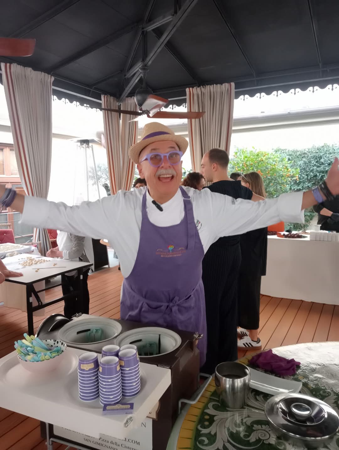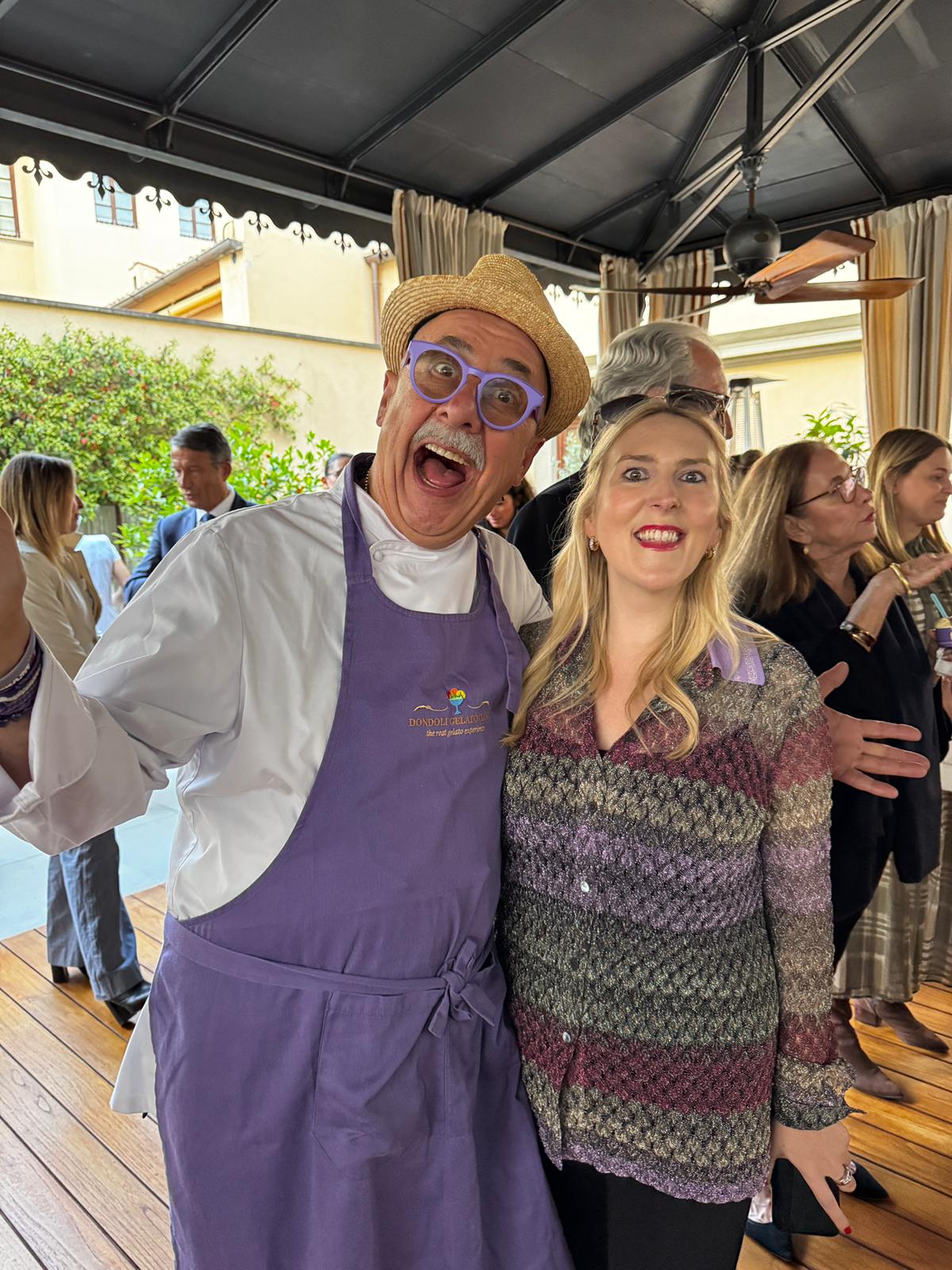 Gelateria Dondoli personifica quella notoria tradizione toscana trovante atavica ambasciatrice nella regale Caterina de’ Medici. Gusti classici, mixage, sperimentazioni chiamate Zabaione al Vinsanto, Mango con cocco e riso, Pascale-Marthine Tayou, assurgono a goduriose attrazioni per quanti conoscano Sergio, la cui meritata bravura spopola tra guide e TV internazionali anche grazie alle delizie certificate Crema di Santa Fina®, Champelmo®, Dolceamaro®, Sorbetto di Vernaccia. Cotanta squisitezza non poteva mancare a Palazzo: la presenza fisica di maestro Sergio corona così un sogno palesatosi attraverso Daniele Marrani, suo grande amico e critico enogastronomico di comprovata nomea.