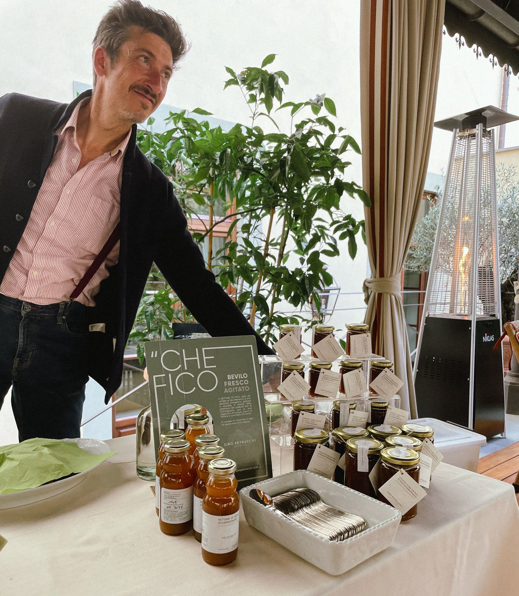 Tra ricercato verde del Dehor tornabuoniano aleggia sensuale profumo emanato da carmignanesi fichi essiccati, nettari, confetture, by Siro Petracchi derivanti dal mieloso Dottato e ricercato Albo bifero, dolce, delicato, ma la produzione casearia vanta altre ricercate prelibatezze generate da selezionati cultivar. Vocazione congenita verso madre natura nutre Siro di partecipato amore verso queste piante, quasi da accudire come amorevoli figlie, rispettandone tempi, cure, metodiche, coltura squisitamente biologica. Cotanta agricoltura naturale genera così fichi e suoi trasformati, ma anche olio e ortaggi stagionali, primizie dai salutari requisiti organolettici.