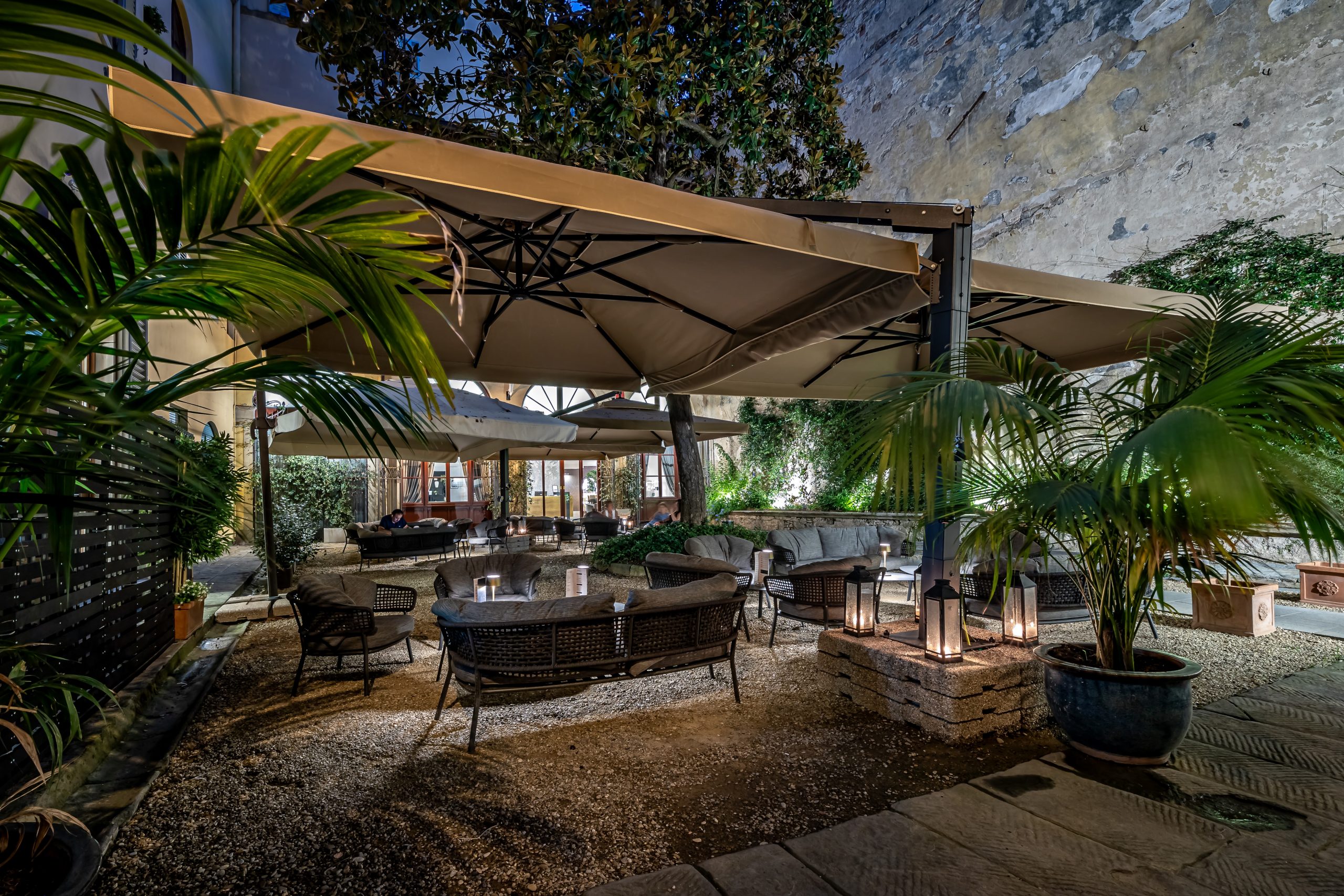 Quanto a pace assoluta, la corte interna rappresenta architettonico rifugio dove rilassarsi tra oculate proposte conviviali, peculiarità condivisa con la panoramica terrazza sul centro storico, estatica immersione nella bellezza fiorentina tra dimore secolari, campanili, chiese, altane, Palazzo Pitti col terrazzato Boboli: Ammirare cotanta bellezza, non c’è dubbio, gratifica l’animo. Palazzo Alfieri vanta altresì offerta variegata, invitante attrattiva contemplante esperienze gastronomiche personalizzate, massaggi, hair & beauty services, autonoleggio, babysitting, posizione strategica per visitare Firenze monumentale.
